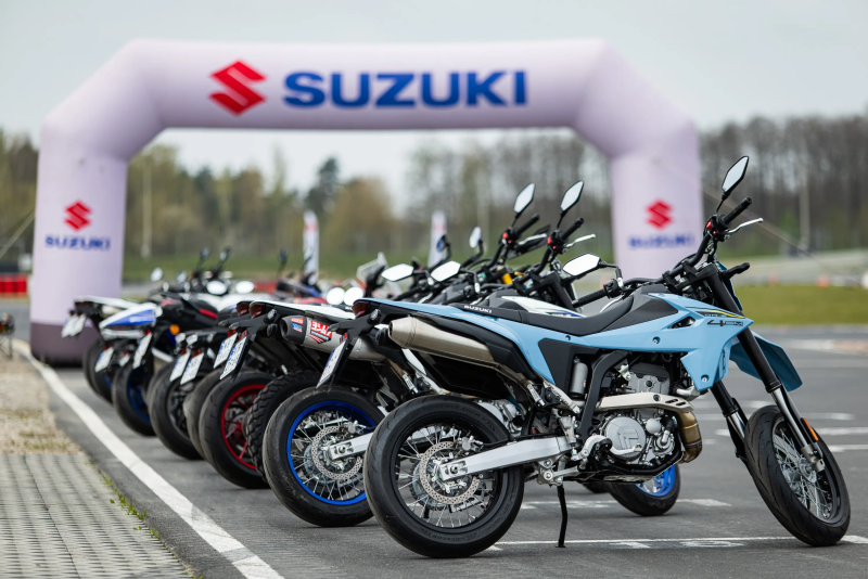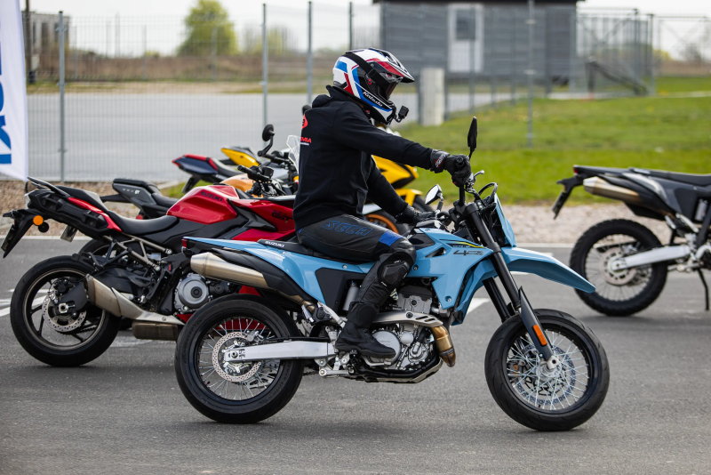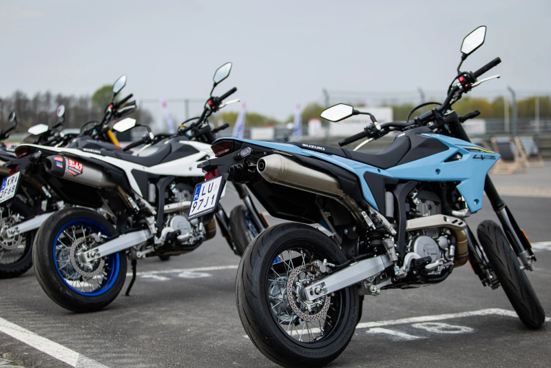 Specjalnie dla dziennikarzy zorganizowaliśmy dzień testów motocykli DR-Z4S i SM. Zainteresowani testowali Suzuki na Torze Słomczyn, z którego pochodzi galeria zdjęć – zachęcamy do ich obejrzenia. W warunkach bezpiecznych, pod okiem instruktorów JC Group (https://jcgroup.com.pl/), dziennikarze mogli sprawdzić możliwości jednocylindrówek z Hamamatsu. Co z tego wynikło? Wkrótce obejrzymy i - oczywiście - także przeczytamy. A póki co, jeszcze przed oficjalnym otwarciem nowego sezonu motocyklowego, przypominamy – DR-Z4SM w sieci Suzuki są dostępne w nowych, obniżonych cenach. Teraz od 37 900 zł (odmiana S – od 38 500 zł)!